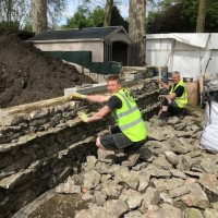 Our part was to help gather the walling stone and boulders from a quarry close to the distillery and build the walls and bee bowls. The garden gained a Silver medal.