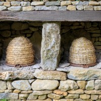 Bee friendly plants and Bee Boles set into old stone walling reflect the farm’s apiary.